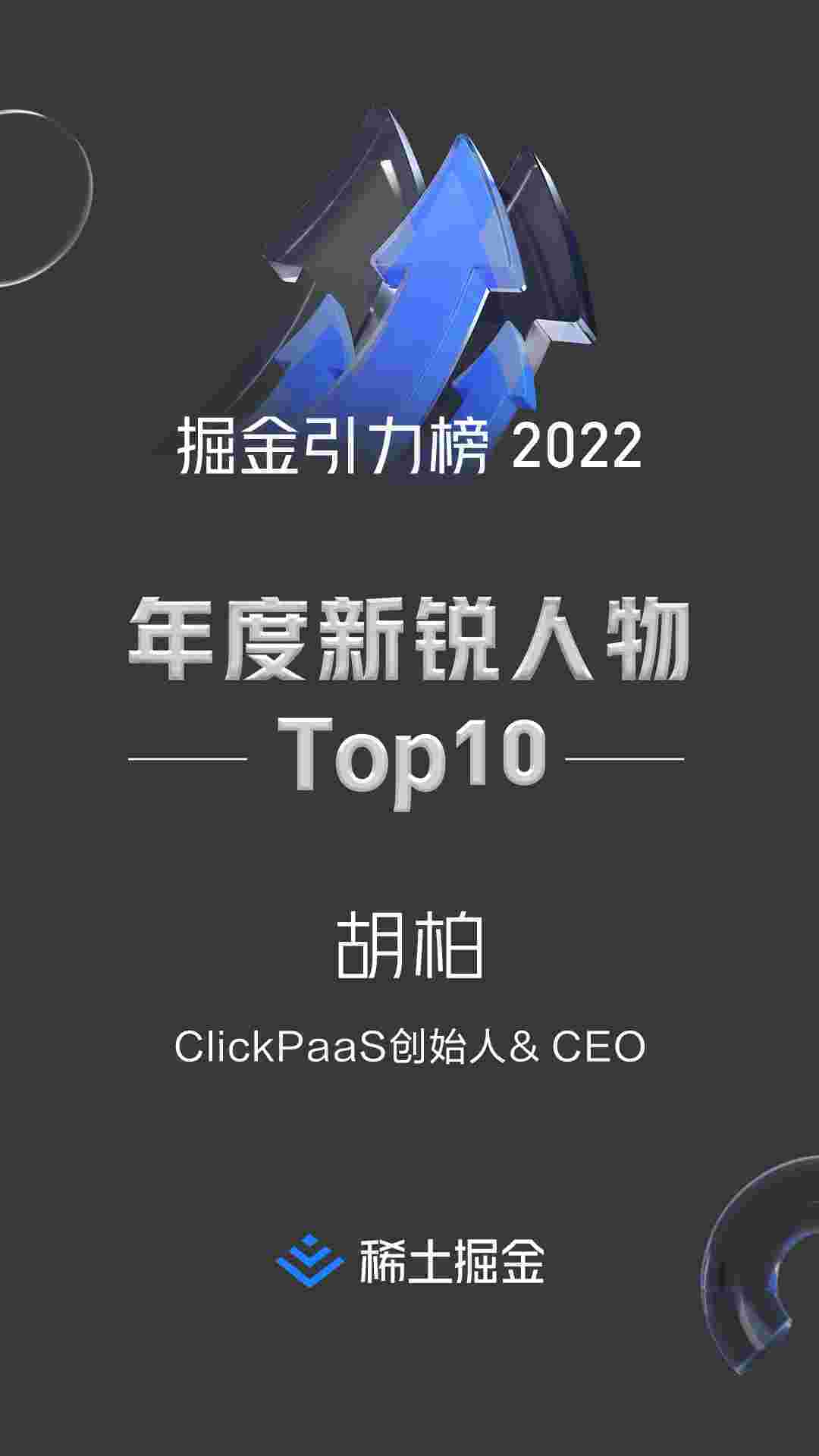 2022年1月6日,,,,稀土掘金社区第一届「掘金未来大会」成功举办,,,,会上发布了“2022 稀土掘金引力榜 年度新锐人物”榜单,,上海爱湃斯科技有限公司(简称VIVO钱包)创始人及CEO胡柏实力入选年度新锐人物TOP 10。。。