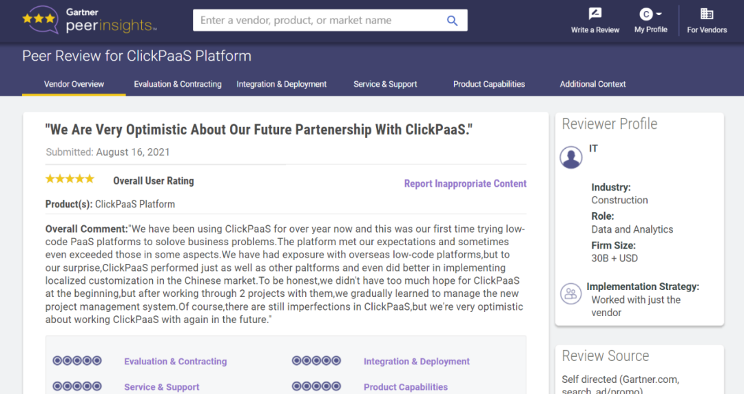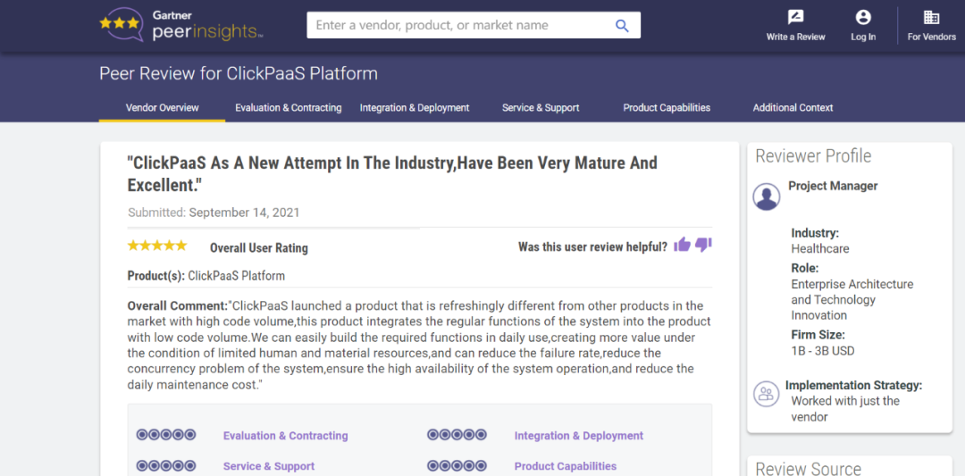 Tips::【Peer Insights】——用户对企业IT产品和服务发布真实评价的平台。。。目前已有355个市场,,,255,000条经过验证的评价。。每一条评价Gartner会针对参评企业营收规模及参评人员信息做验证、、、评价内容做多维核实。。。